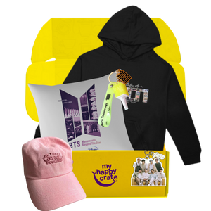 Each Happy Crate is packed with 4–6 high-quality, fan-approved items — think outfits, accessories, photo cards, and collectible merch. Every crate is carefully curated around your chosen theme to bring fans the ultimate surprise box!