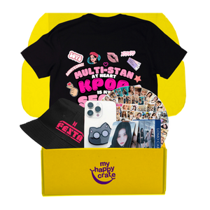 Each Happy Crate is packed with 4–6 high-quality, fan-approved items — think outfits, accessories, photo cards, and collectible merch. Every crate is carefully curated around your chosen theme to bring fans the ultimate surprise box!
